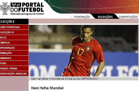 新浪体育讯 北京时间6月8日晚,葡萄牙足协官方确认,曼联边锋纳尼因为锁骨受伤而遗憾的告别了南非世界杯。