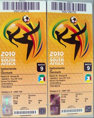 图为:2010南非世界杯门票全面导入二维码防伪管理