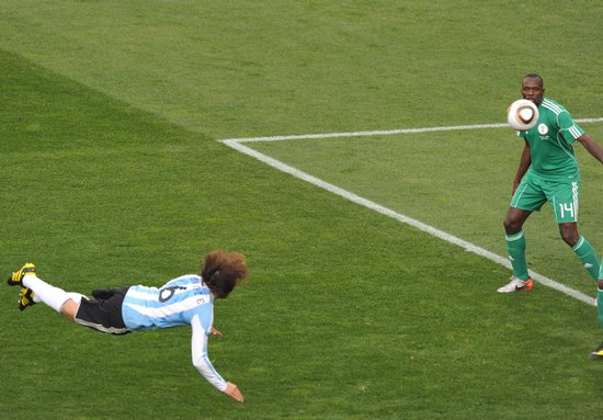 北京时间6月12日晚,世界杯B组阿根廷与尼日利亚队的比赛在约翰内斯堡的埃利斯公园球场展开。图为海因策进球瞬间。