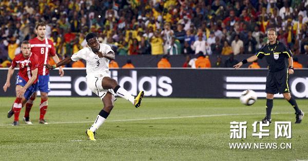 6月13日,加纳队球员吉安在比赛中主罚点球。当日,在茨瓦内举行的2010年南非世界杯D组比赛中,加纳队以1比0战胜塞尔维亚队。新华社记者李尕摄