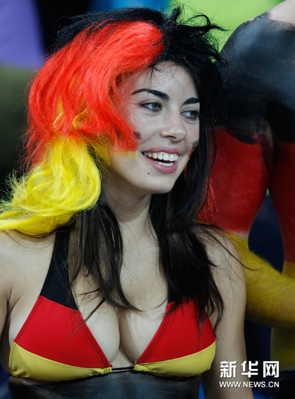 6月13日,一名德国队球迷在比赛前。当日,在德班进行的2010年南非世界杯D组首轮比赛中,德国队对阵澳大利亚队。