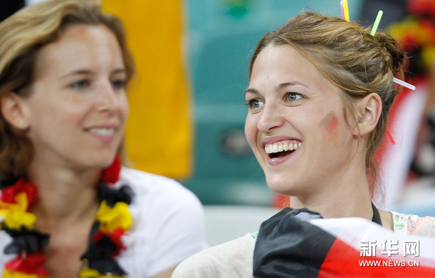 6月13日,两名德国队球迷在比赛前。当日,在德班进行的2010年南非世界杯D组首轮比赛中,德国队对阵澳大利亚队。