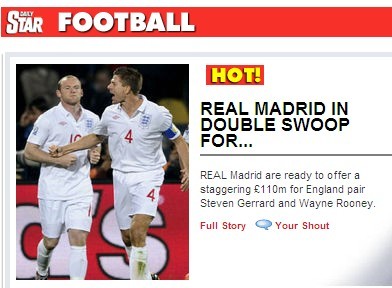 在利物浦结束了一个糟糕的赛季之后,早有传闻称杰拉德有望加盟皇马,如今,有望加盟皇马的英格兰球星不仅仅只是杰拉德,曼联球星韦恩-鲁尼也是皇马新帅穆里尼奥向往的人选。