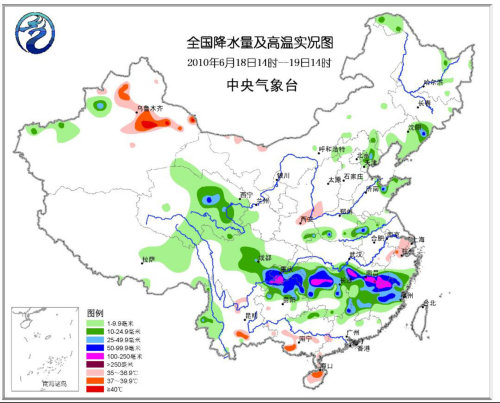 从19日夜间开始,南方的降雨格局又再度出现新的变化,降雨强度明显增强,并在江南以及华南北部形成一条范围较广的大暴雨带。受其影响,未来24小时,湖南、江西、福建、浙江和广西等地的部分地区将出现100毫米以上的大暴雨,局部地区将有特大暴雨。中央气象台继续发布暴雨橙色预警。