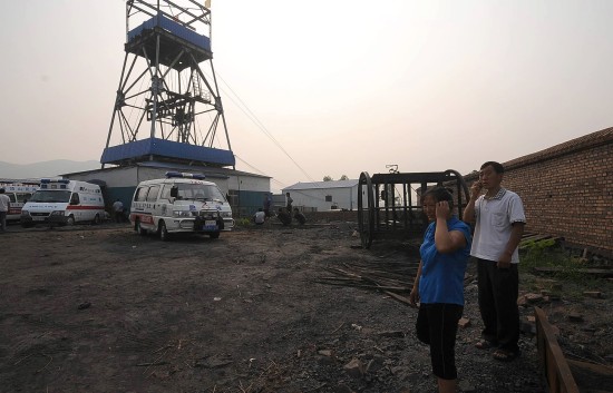 6月21日,遇险矿工亲属在兴东二矿井口等待消息。
