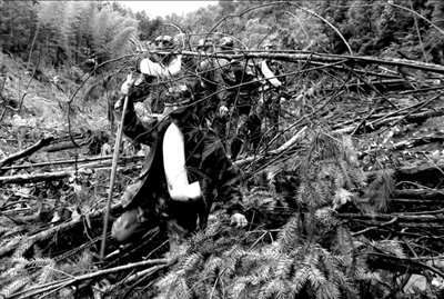 ▲21日,送粮分队的武警官兵为受灾群众运送粮食。近日,福建省将乐县大源乡廖家地村遭遇持续强降雨,当地群众粮食短缺。武警三明支队经过9个多小时的跋涉,将800多公斤的大米、方便面等急需品送到群众手中。新华社发