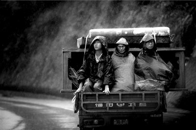 22日,在福建泰宁县通往该县重灾乡镇朱口镇的道路上,受灾群众雨中转移。新华社发