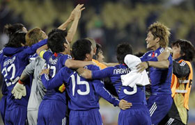 新浪体育讯 北京时间6月25日02:30(南非当地时间24日20:30),第19届世界杯E组末轮一场比赛在鲁斯腾堡的皇家班佛肯体育场展开争夺,日本3比1力克丹麦,本田圭佑和远藤保仁任意球世界波建功,托马森点球补射扳回一城,但替补出场的冈崎慎司锁定胜局。日本获得小组第2出线,将战巴拉圭。