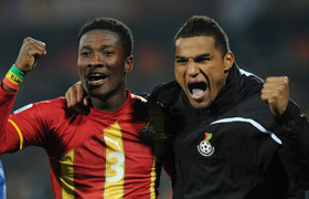 新浪体育讯 北京时间6月27日2时30分(南非当地时间26日20时30分),世界杯1/8决赛第2场在勒斯滕堡皇家巴福肯球场展开较量,加纳经过加时2比1淘汰美国杀进8强,追平1990年喀麦隆和2002年塞内加尔保持的非洲球队最佳战绩。上半时,普林斯-博阿滕攻入加纳本届世界杯首粒运动战进球。下半场,多诺万点球扳平,现以3球并列射手榜首位。加时赛,加纳前锋吉安也攻入本届个人第3球。加纳中卫乔纳森-门萨与边锋阿尤吃到黄牌,将无缘与乌拉圭的1/4决赛。