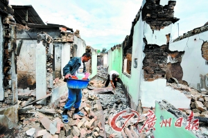 在吉尔吉斯斯坦南部奥什附近的一个村庄,人们在被毁坏的建筑内寻找自己的财物。据联合国统计,吉国冲突共导致至少40万人被迫离开家园。