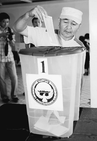 6月27日,吉尔吉斯斯坦民众在首都比什凯克一投票站内参加投票。新华社发