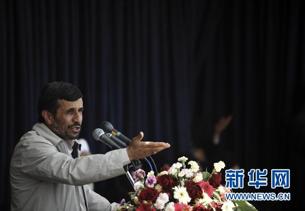 6月16日,伊朗总统艾哈迈迪-内贾德在伊南部城市沙赫尔库尔德向公众发表演讲。艾哈迈迪-内贾德当天说,伊朗赞同就其核问题进行谈判,但必须是有条件的,伊朗会很快公布谈判条件。新华社/路透(资料图)