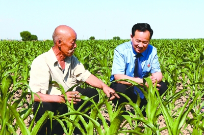 张章宝在田间地头与村民交流。