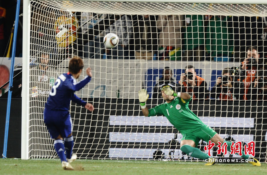 29日晚,南非世界杯1/8决赛第七场比赛比勒陀利亚的洛夫托斯球场拉开战幕,由巴拉圭队迎战日本队。120分钟比赛结束时,双方均没有建树,场上比分始终保持在0-0。在残酷的点球大战中,巴拉圭队五罚全中,以5-3击败日本,挺进八强。