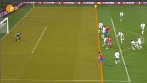 德国电视二台ZDF在回放中显示,哈维将球传向比利亚的一瞬间,后者已经领先葡萄牙最后一名后卫有半个身位。但当时哈维与助理裁判之间隔了四名球员和一名西班牙球员,所以边裁未能做出判罚。