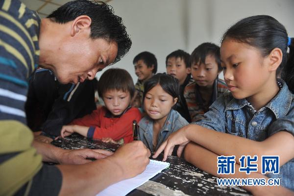 7月1日,老师在安置点教室内登记复课学生的相关信息。当日上午8时30分,在贵州关岭“6·28”滑坡灾害转移村民安置点,80名适龄儿童唱响国歌,在简陋的教室里开始了滑坡灾害后的第一节课。新华社记者欧东衢摄