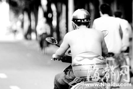 烈日下,榕城街头时见光膀子的汉子,不但路边,就是在商场、餐厅等公共场所,随处可见打赤膊的男人,甚至有美女穿着露背装上街。在高温下,光膀子干活的人就更多了。