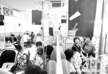在省妇幼保健院输液区,记者昨日看到,输液的人挤到了门口,90%都是父母带着孩子在输液,孩子的年龄大多为3岁以下。黄女士懊恼地说:“天气实在是太热了,晚上不开空调真的是睡不着啊!可是整夜整夜地开,小孩就生病了。”省急救中心数据显示,这几天高温,儿科、内科就诊数量都骤增50%。省急救中心每天接诊近200名儿童患者,4日最高温日,更是增加到201个,大多为热感冒、呼吸道感染、口腔溃烂等。