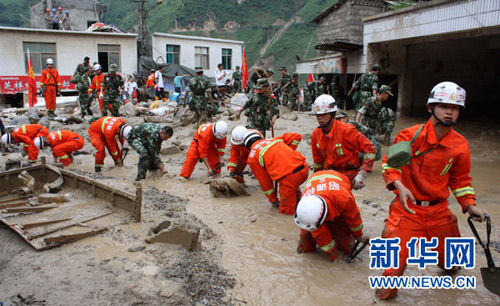 7月13日,消防官兵正在清理受灾现场。当日凌晨,云南省昭通市巧家县小河镇突降暴雨,山洪猛涨,山体滑坡。截至13日22时,造成13人死亡,30余人失踪,43人受伤(其中11人重伤),部分民房倒塌。目前,迅速赶赴现场的云南各级消防官兵正全力开展救援工作。新华社发 (闫科任摄)