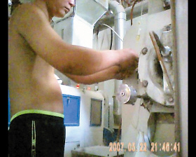 在出料口,一个医用输液管插进出料口,输液管内流动着一种淡黄色的液体。工人说,输液管里的液体就是香精,加香精是让加工出来的大米有香味。