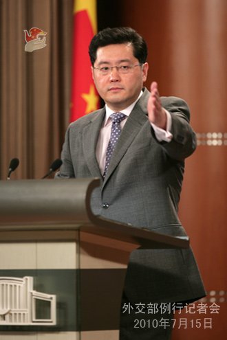 2010年7月15日,外交部发言人秦刚举行例行记者会。