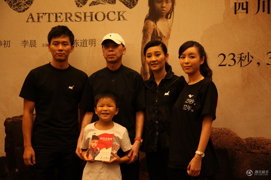 在媒体发布会的最后,汶川地震中的抗震小英雄林浩带着他的公益专辑现身。他说“我爸爸非常喜欢看冯小刚叔叔的电影,我理解的公益就是帮助别人,我想把这张公益专辑送给冯小刚叔叔。这个电影是讲唐山大地震的,我想说四川人一定会雄起的!”冯小刚导演看到忍不住说:“真正的四川人多棒啊!”