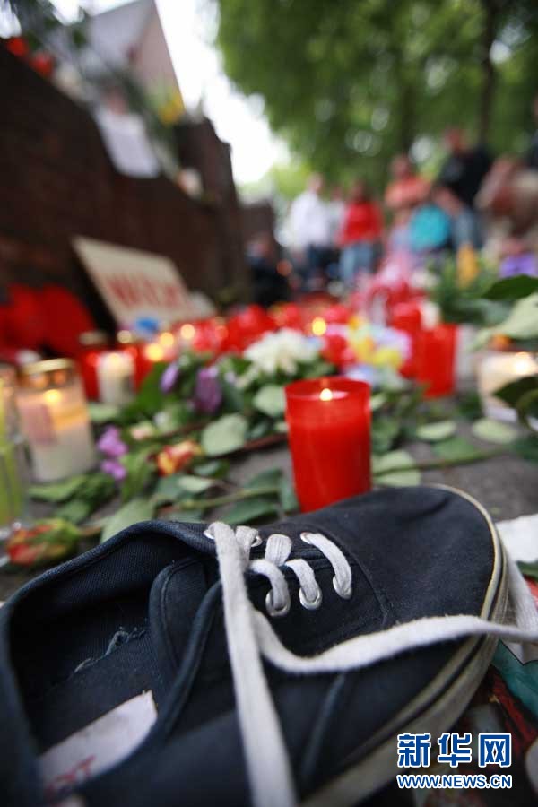 7月25日,在德国杜伊斯堡踩踏事件发生地附近,当地民众摆放各种纪念品悼念亡者。 7月24日,德国杜伊斯堡市在举行“爱的大游行”电子音乐狂欢节时发生踩踏事件。根据官方公布的数据,踩踏事件已造成包括1名女性中国公民在内的19人死亡、342人受伤。新华社记者罗欢欢摄