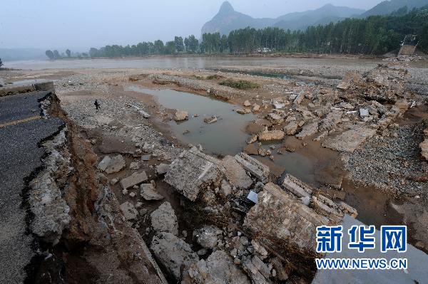 这是7月27日拍摄的已经垮塌的栾川县汤营村伊河大桥。新华社记者 赵鹏 摄