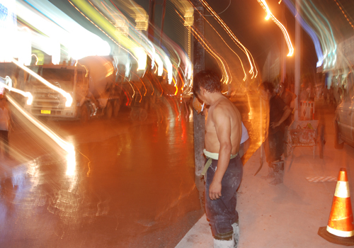 《工地夜景》1日晚上9时中山东路工地(东方商业广场附近)