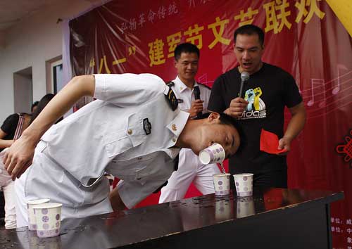 表演的节目大都自编自演,有歌曲、舞蹈、军装秀等,由官兵和员工一起参与的“运水”游戏更是将活动的气氛推向高潮,营造了“军爱民、民拥军、军民鱼水一家亲”的良好社会氛围。