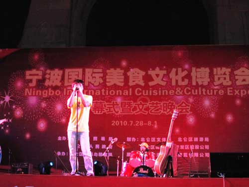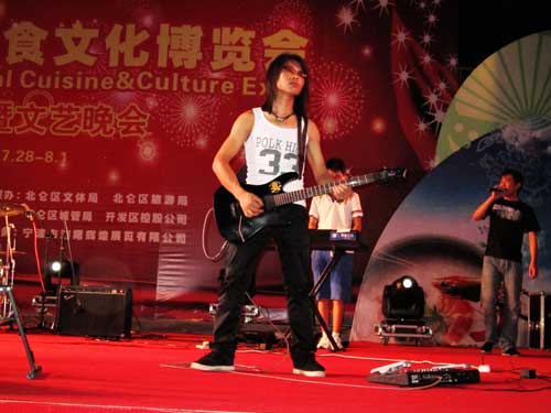 一些观众告诉笔者,对于龙星乐队他们早有耳闻,现在又是美食节期间,可以一边品尝美食,一边享受着这场听觉盛宴。平时大家的工作都很累,没有多余的时间去享受生活,放松一下精神,这个摇滚专场帮助他们把生活中的压力释放出来。有些观众还是特地从周边地区赶过来的。一位张先生讲到,我们一家是特地从宁波赶来的,就是为了看龙星的演出。