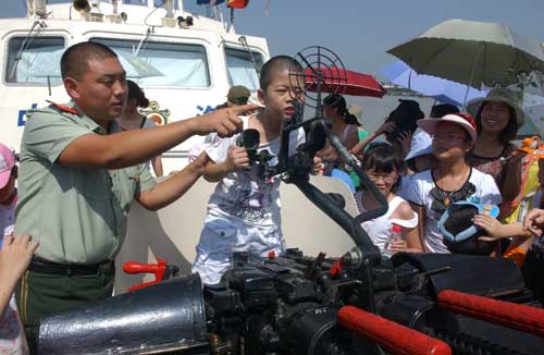 在建军节走进海警二支队,对我来说很有意义!虽然冒着酷暑,但零距离参观军营的生活,与海警艇亲密接触,抚摸着艇上的机枪,对于我来说还是第一次,看到烈日下刻苦训练的海警官兵,深受感动和震撼。我感到我们今天平安生活的来之不易。
