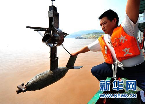 7月28日,三峡水文局的工作人员甘圣斌冒着高温在三峡库区进行测流测沙作业。当日,三峡水库迎来二次洪峰,为保障汛期安全,在库区工作船上的水文工作者们每天冒着甲板上40多摄氏度的高温,进行测流测沙等工作,为汛期调度提供准确信息。新华社记者程敏摄