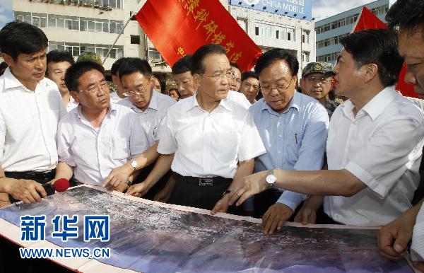 8月8日下午,中共中央政治局常委、国务院总理温家宝赶到发生特大泥石流灾害的甘肃舟曲县灾区,察看灾情,指导救灾。新华社记者李学仁摄