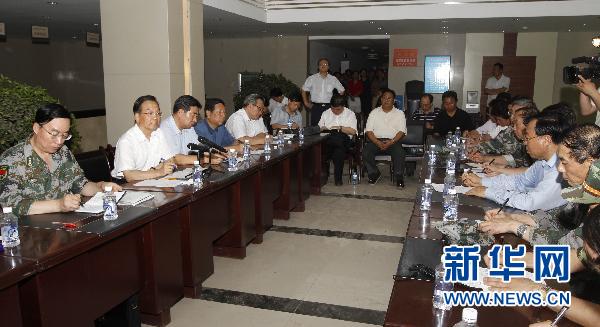 23时许,温家宝再次主持召开会议,就抢险救灾措施落实情况听取有关部门情况汇报,进一步部署抗洪抢险救灾工作。回良玉也在会上讲话。会议持续到9日凌晨近2时。