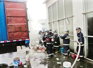 昨日,一辆载有辛硫磷的货车停在武汉开发区一维修站时突发自燃。由于不知道辛硫磷燃烧后会放出一氧化碳、氰化氢等高毒烟气,灭火的10余名工人先后出现头痛、恶心,消防官兵接警后迅速赶到,半小时排除险情。