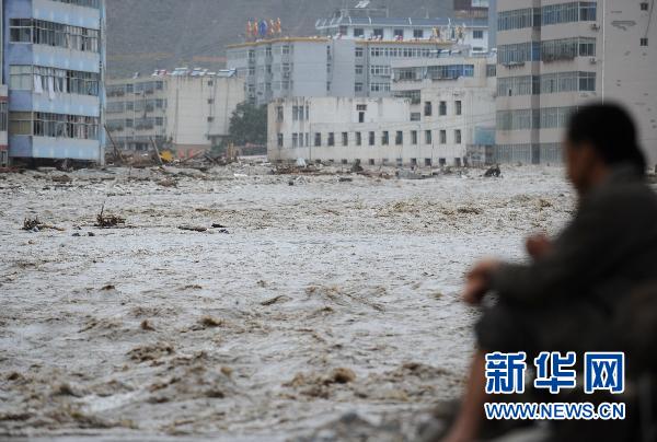 这是8月13日拍摄的从舟曲县城穿城而过的白龙江。新华社记者 聂建江 摄