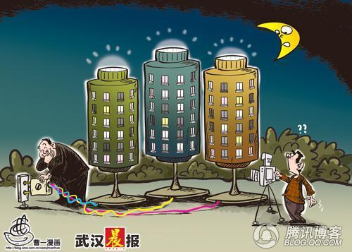 “住宅空置,我来证明。让我们先从身边的小区来验证一下吧,一起来晒晒身边小区的夜晚照,看看黑灯现象是否严重。”8月5日,网上发起“网友集体晒黑灯”活动,用“黑灯率”来证明小区的空置率之高。6日就有开发商老总做出应对安排,要求所有空置房晚上7时至10时30分必须保持照明,用节能灯,不要一种色调……据报道,目前网友们上传的“黑灯”照片已经涉及北京近20个小区,其中五环附近丽园阳光小区的“黑灯率”大概占六成左右(据8月9日《广州日报》)