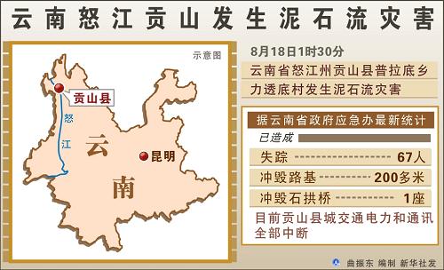 资料图:图表:云南怒江贡山发生泥石流灾害新华社发