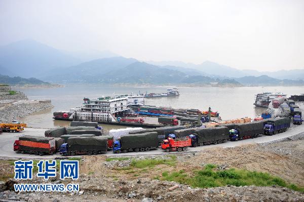 8月23日,车辆在三峡库区秭归县银杏沱码头排队上船。新华社记者 郝同前 摄