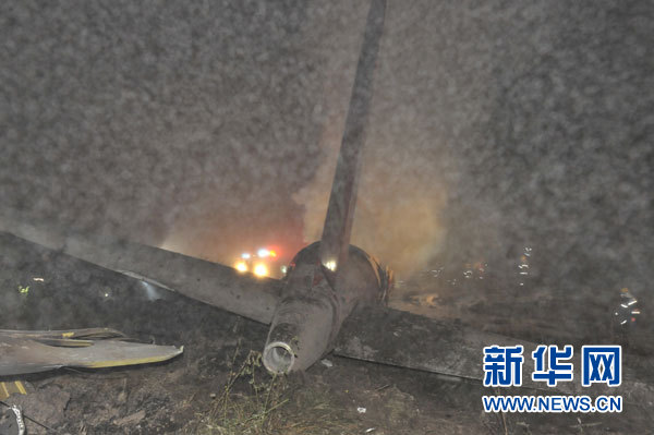 这是8月25日凌晨拍摄的失事飞机残骸。新华社发(王志富摄)