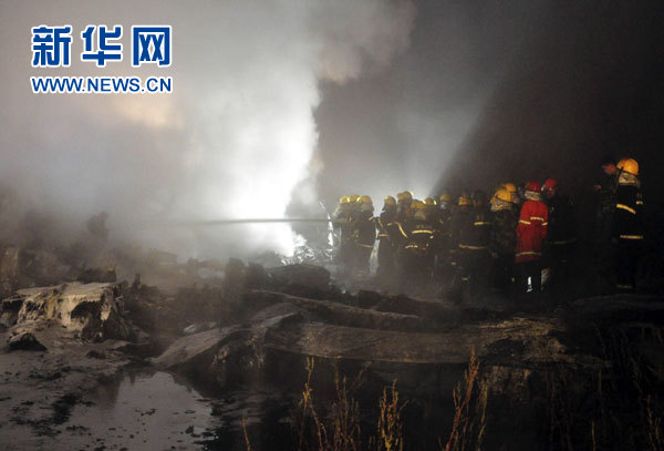 8月24日晚,救援人员在坠机事故现场展开救援。 新华社发