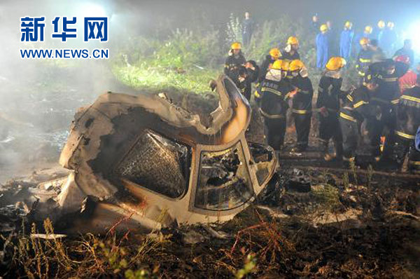 8月25日凌晨,消防官兵在坠机事故现场搜寻幸存者。新华社发