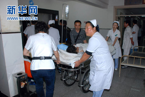 8月25日凌晨,坠机事故幸存者被紧急送往当地医院抢救。新华社发(刘宇 摄)