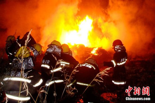 24日21时36分许,河南航空有限公司(原鲲鹏航空公司)一架由哈尔滨飞往伊春的E190型飞机在抵达伊春机场降落时失事,机上包括5名机组人员在内共96人。失事现场发现42具遇难者遗体,其余54人获救送医,目前无生命危险。图为飞机失事现场 张恩普 王志富 摄
