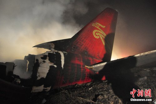 24日21时36分许,河南航空有限公司(原鲲鹏航空公司)一架由哈尔滨飞往伊春的E190型飞机在抵达伊春机场降落时失事,机上包括5名机组人员在内共96人。失事现场发现42具遇难者遗体,其余54人获救送医,目前无生命危险。图为飞机失事现场 。陈刚 摄