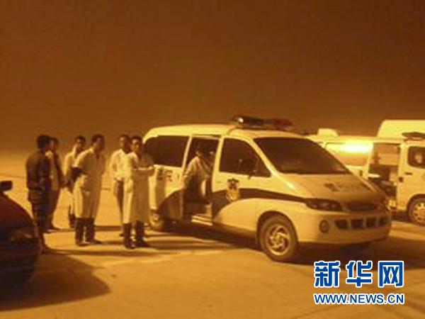 8月25日凌晨,救援人员在飞机失事现场待命(手机拍摄)。新华社发(李广福 摄)