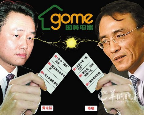针对国美电器近期的经营状况,黄光裕与陈晓各执一词,观点大相径庭。国美本月23日刚公布2010年半年报,黄光裕方面便通过门户网站发表评论,认为“与主要竞争对手相比,国美的市场份额大幅下降,领先优势即将丧失。”