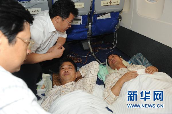 执行伤员转移任务的南航专机对飞机内部进行改造,方便放置伤员担架(8月27日摄)。新华社发