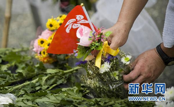 8月29日,游行市民在遮打花园献花,哀悼遇难同胞。新华社记者吕小炜摄